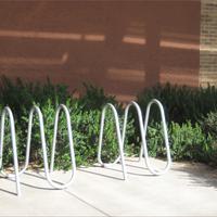 En el soporte para bicicletas Flo, el diseño fluido asegura de manera eficiente tres bicicletas y admite una variedad de candados de uso común. Flo es una solución artística para guardar y proteger las bicicletas que cumple con las recomendaciones de la Association of Pedestrian and Bicycle and Professionals (APBP).