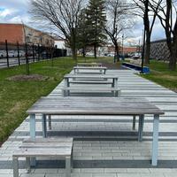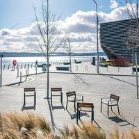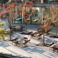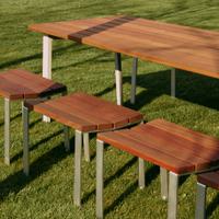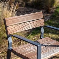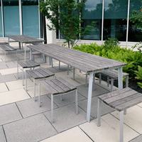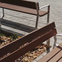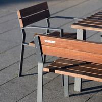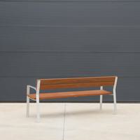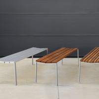 El banco Harpo - diseñadas por Miguel Milá para Urbidermis - comparte el diseño internacional y la estructura arquitectónica simple de todos los elementos que componen la colección Harpo. Atractivos y cómodos como asientos individuales, los bancos también son el complemento ideal de la mesa Harpo. La posibilidad de elegir entre listones delgados y anchos de aluminio o madera permite adoptar distintos enfoques estéticos.